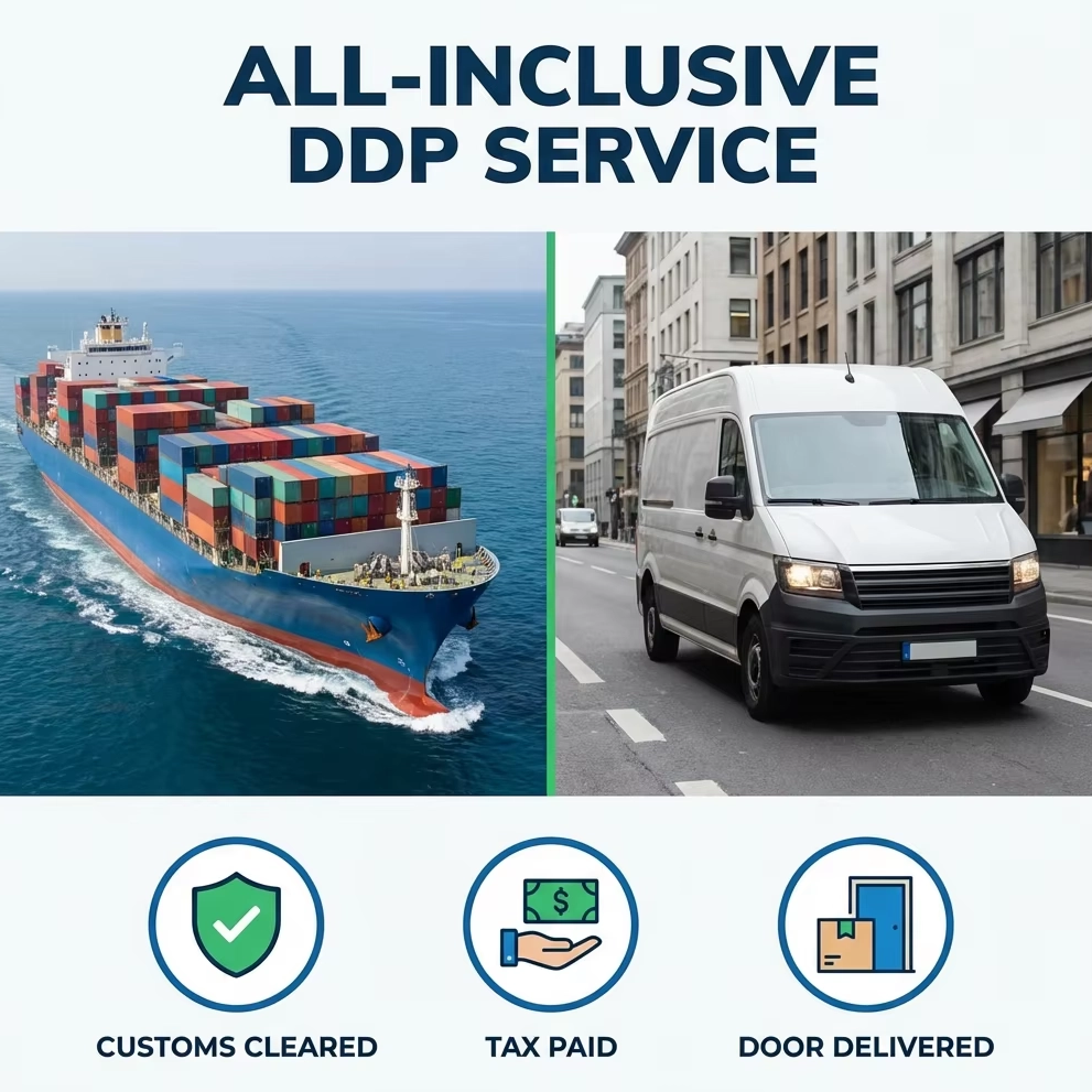 Q: What does DDP include exactly? A: Our DDP price covers ocean freight, origin charges, ISF filing, US customs clearance, import duty, customs bond, local trucking, and final delivery. There are absolutely no extra fees for the receiver. |