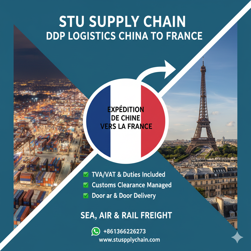 Looking for a hassle-free shipping solution from China to France? STU Supply Chain Management (Shenzhen) Co., Ltd offers a comprehensive DDP (Delivered Duty Paid) service. We manage the entire logistics chain: from supplier pickup in China to customs clearance and final delivery at your doorstep or Amazon FBA warehouse in France.